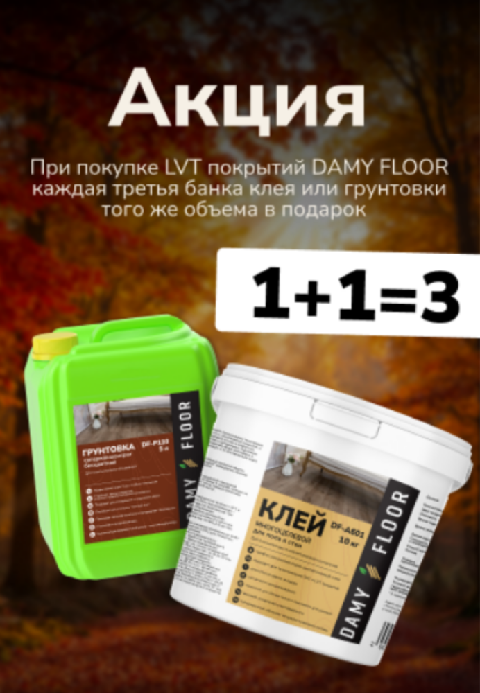 - Действует при покупке LVT покрытий DAMY FLOOR